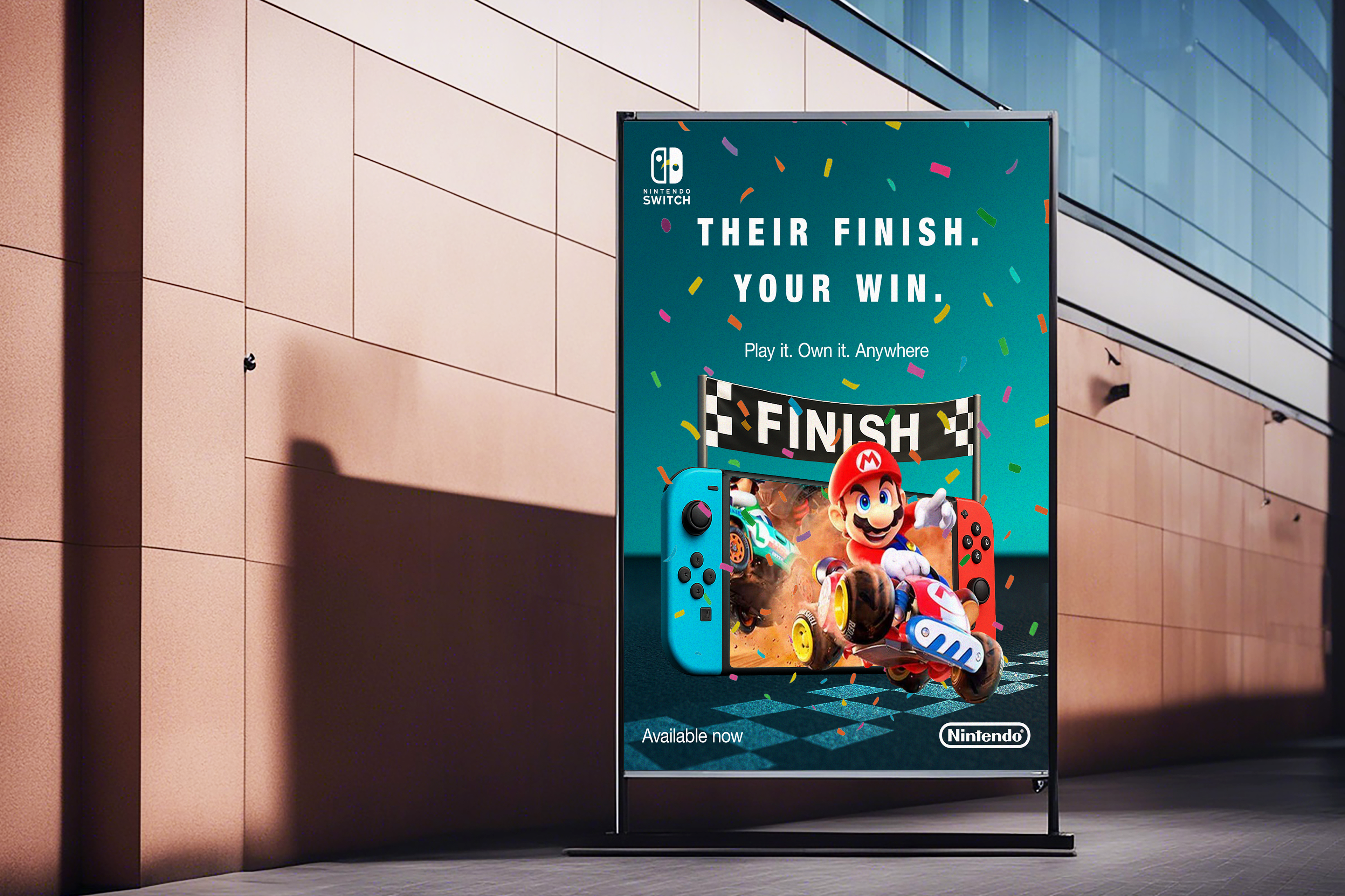 The Nintendo campaign reimagined — how Nintendo could market the portability and excitement of the Nintendo Switch through a focus on Mario Kart. The concept highlights the console’s unique selling point — the ability to bring console-quality racing anywhere, anytime.
